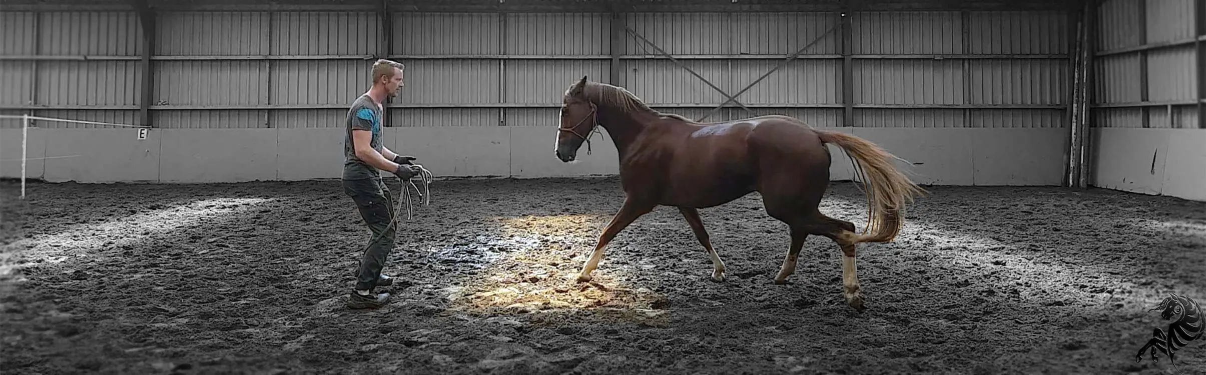 De trainingen zijn gericht op het verbeteren van de communicatie tussen jou en je paard door te werken aan jouw leiderschap en zelfvertrouwen. Dit doen we door te werken met jouw lichaamstaal om verandering in het gedrag van jouw paard teweeg te brengen. Tijdens de training leren paarden om op jou te letten en krijg je hun volledige aandacht, wat ervoor zorgt dat je effectiever kunt trainen. Onze methode leidt uiteindelijk tot algehele diervriendelijke controle. Hierbij zijn geen touwtjes meer nodig in handen, omdat het paard zich volledig laat leiden door jouw lichaamshouding en energie. Het doel is om elkaar echt te leren kennen en respecteren, wat automatisch veel ongewenst gedrag en trainingsproblemen wegneemt.